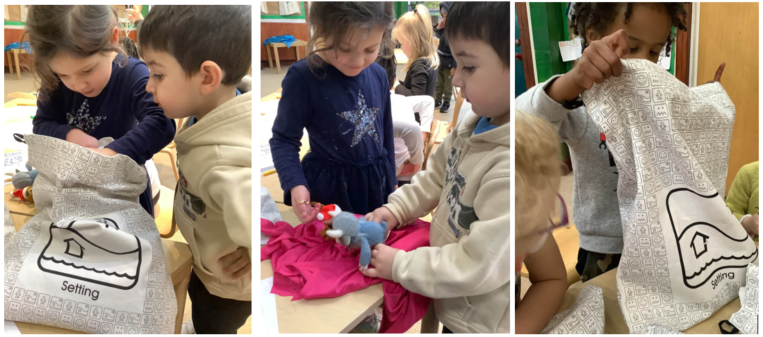 Tales Toolkit is an engaging programme that we use across Rowland Hill Nursery School with all the children to develop story telling in a fun and collaborative way. Stories are created together using the key aspects - character, setting, problem, solution. The resources encourage the children to use real objects and story props as inspiration for stories, encouraging small world play and role play.